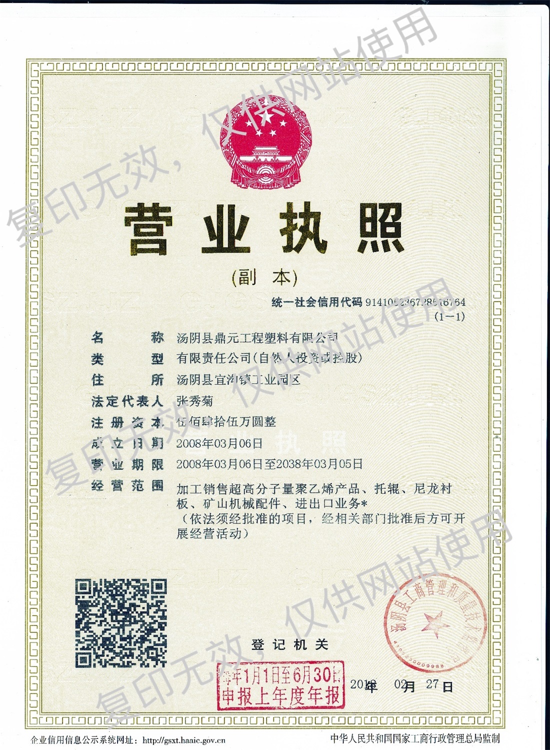 您當(dāng)前的位置: 超高分子量聚乙烯托輥首頁 > 營業(yè)執(zhí)照